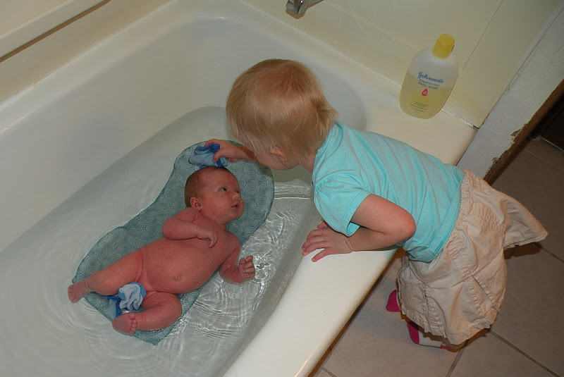 | James' first tub bath. He loved it! He didn't even fuss at Cadence washing his hair. |